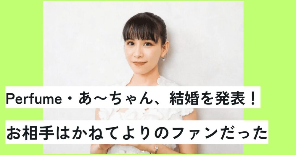 Perfumeのあ〜ちゃん(西脇綾香さん)は、長年支えてくれたファンの一人でもある一般男性と結婚しました。